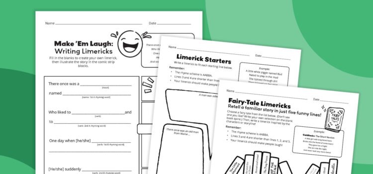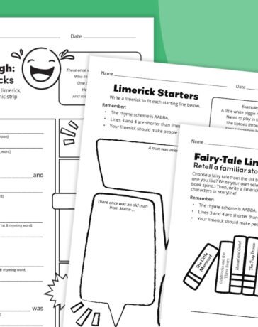 Limericks are short, funny poems with a catchy rhythm. They’re also a perfect way to help kids practice rhyme, syllables, and creative writing. This free printable limerick worksheet bundle walks students through the classic five-line limerick format, including syllable counts...
