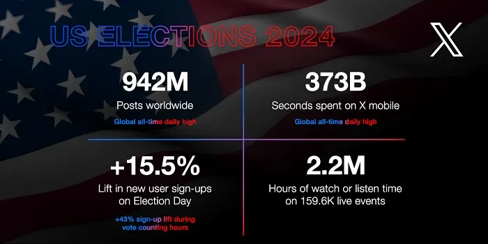 X Touts Record High Usage on Election Day