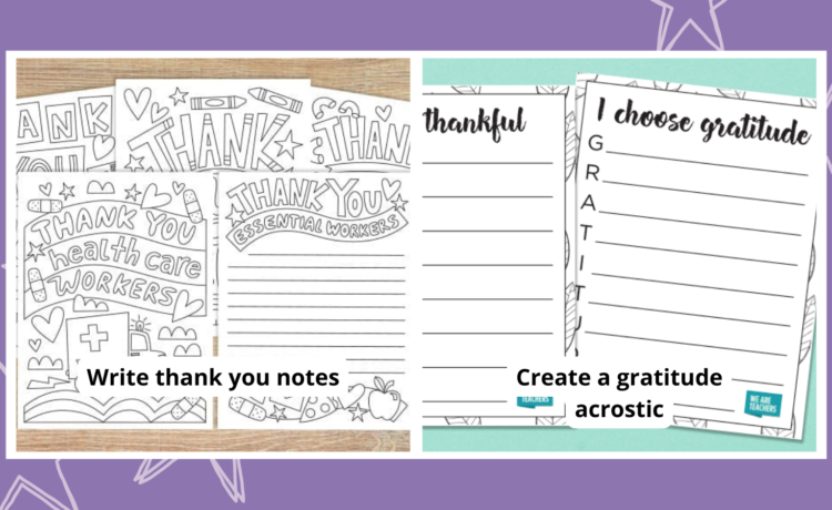 Encourage your students to draft a letter of gratitude. This powerful exercise involves kids personally thanking an educator for being in their lives. Since gratitude activities for middle school can be a little more involved, you may want to set a minimum word count. Better yet, download our free Teacher Thank-You cards and spread the love to all the staff members around your building.