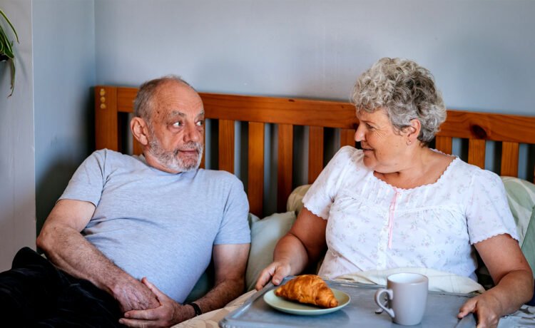When O Mochain occasionally lets go of the need to spell out all characters’ feelings, the stories are finally allowed to shine. In the fourth short, the act of renovating a kitchen leads to a couple’s undoing in an absurdist and humorous take on technological encroachment in the domestic sphere. Joshua Bourke’s dryly composed cinematography heightens the absurdity, the oven in the kitchen almost personified as a robotic and eerie villain. The second and strongest chapter is a quietly empowering tale in which Peggy (Mary McEvoy) hires an escort, Red (Brendan Conroy), to keep her company, spending all day with her suit-clad, panama-hat wearing suitor, much to the chagrin of her adult son Jerry (played by O Mochain himself). “Jerry, he won’t mind?” Red asks, but Peggy is unequivocal in her rebellion: “It’s my house.” The plot is mundane, but funny and compelling in its simplicity: the pair have a meal, they go to the pub, they have sex. As her escort leaves, cash in hand, Peggy is left by herself in bed with the happiest of smiles. “Same time next month?” She is home alone, but on her own terms.