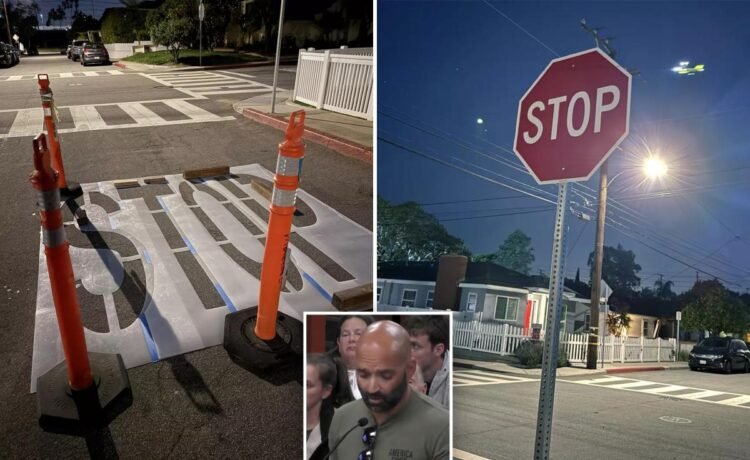 Joseph Brandlin, 44, installed 30-inch high signs and painted the word “STOP” on the ground — just weeks after his son was nearly caught up in a crash, which he described as the “last straw,” the Los Angeles Times reported.