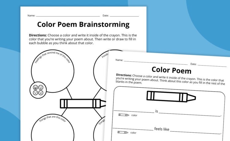Poets from Shel Silverstein (“Colors”) to Robert Frost (“In White”) have been inspired by colors to write their poetry. As your students learn to write, start with something they know—colors—to inspire their first poems using our free printable color poem worksheets.