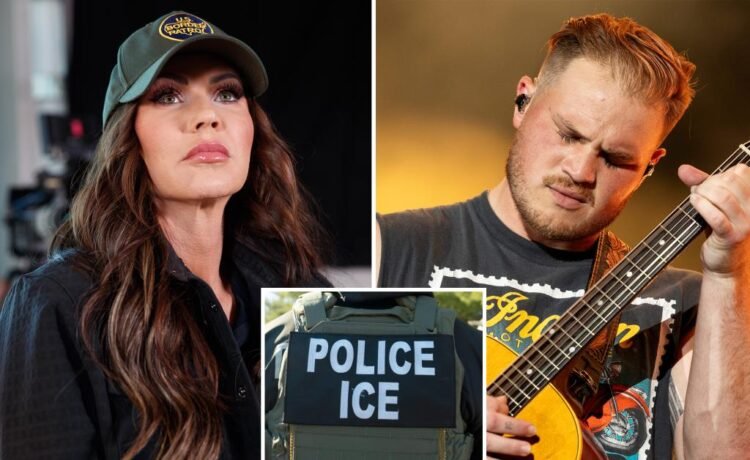 Homeland Security Secretary Kristi Noem went scorched earth on country music superstar Zach Bryan over his controversial new song targeting ICE raids — as the singer said the tune is about “how much I love this country.”