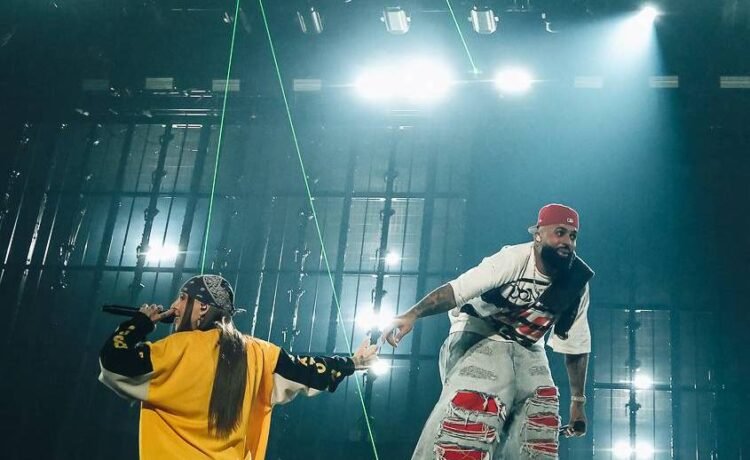 As the pyrotechnics, laser, and neon lighting brightened the arena, Carrión welcomed a string of guests and close friends to the stage, starting with Rich The Kid and Ty Dolla $ign, who performed their single “Carnival.” Throughout his set, Carrión revisited tracks from his earliest projects such as Sauce Boyz, Sen2 Kbrn Vol. 1, and Monaraca, all which dropped at the height of the pandemic and helped put his name on the map. During the second act, fellow Puerto Rican singers Justin Quiles and Lenny Tavares performed a medley, including “Conexion” and “SI SI SI SI.” Fans were given one last surprise as Young Miko joined the rapper for their joint track “AMG.” She even launched into one of her own hits, “Wassup,” before sharing a hug with Carrión.