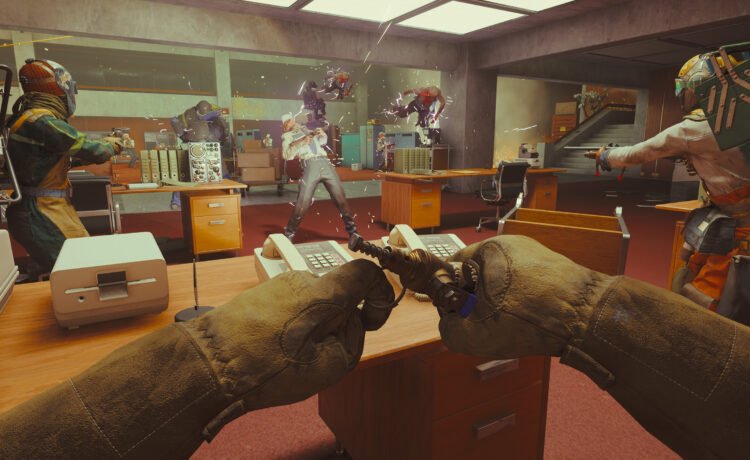 The Job that Remedy showed off in the media briefing (and featured in today’s Future Games Show Spring Showcase) was Paper Chase, a mission filled with flying yellow sticky notes, sticky-note monsters, and one hulking sticky-note titan as the final boss. It’s set in a classic FBC office space, concrete walls and blood-orange carpet, and players have to eradicate the rogue, multiplying sticky notes as well as the rushing Hiss. Little squares of paper swirl through the air and cling to the player’s face, covering the screen at times, amid explosions, flickering lights and showers of bullets. At one point, a player places a piggy bank in their melee weapon and smashes it on the Hiss, screaming, “Stand back, piggy’s coming out!” It activates an AOE wind effect on nearby enemies. There are environmental factors to mess with and a range of weapons to deploy — shotguns, machine guns, rifles, pistols, water cannons, turrets, grenades, electrified impact devices, boomboxes — and overall, Paper Chase seems like a damn good time.