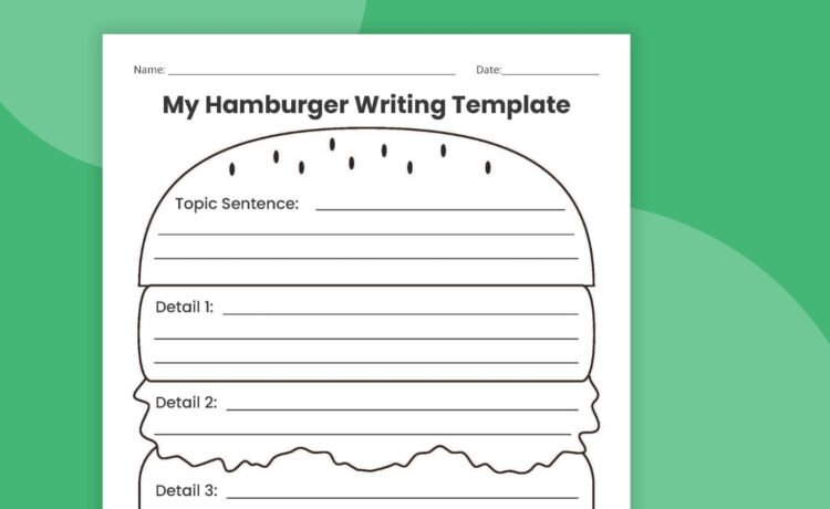 The hamburger writing template helps students write good paragraphs that include a topic sentence, supporting details, and a conclusion. The topic sentence and conclusion are the “buns,” with the supporting details (usually three) shown as the burger patty, lettuce, or other fillings. This visual method is easy for kids to understand and remember, making it a popular choice for elementary writing classes.