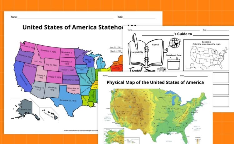 We’ve also added a handful of free printable worksheets with activities like state and capital quizzes and puzzles, U.S. state graphic organizers, and instructions on drawing your own physical map of the country. Get your free printables by filling out the form on this page.