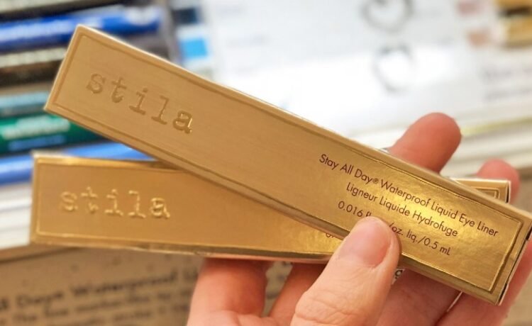 hand holding 2 boxes of Stila eyeliner