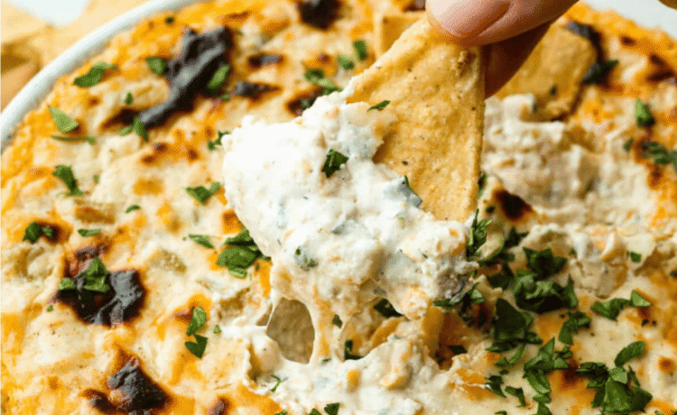 Bake for 15-20 minutes, until the top is browning and the edges of the dip are bubbling. Serve immediately with tortilla chips, sliced baguettes, or fresh vegetables.