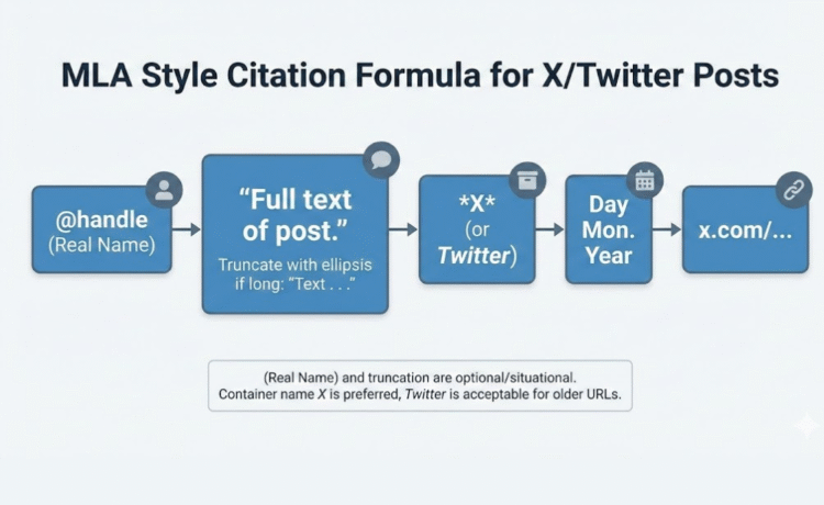 The Modern Language Association (MLA) guidelines for citing content from X (formerly known as Twitter) focus on using the post’s text as the title, identifying the author by their handle, and ensuring the URL is accessible.