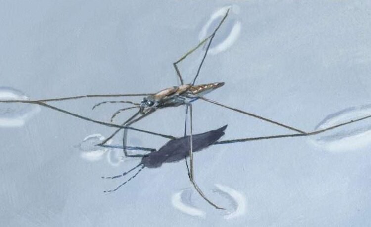 Water striders are a common sight on ponds, vernal pools, and puddles. During clear summer days, these insects seem to walk on water, a feat they accomplish through a combination of long legs that distribute their weight across the water’s surface and micro hairs that make these invertebrates extremely water repellent. But what happens to these water walkers when it rains?