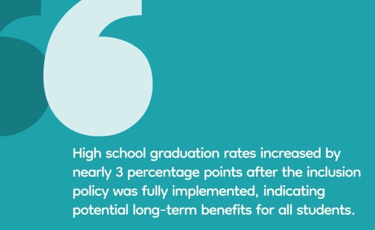 • Increased graduation rates. High school graduation rates increased by nearly 3 percentage points after the inclusion policy was fully implemented, indicating potential long-term benefits for all students.
