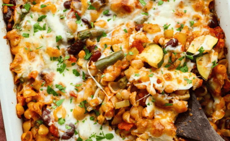 - It feels familiar: All the cozy flavors of minestrone soup, just baked into a warm, cheesy pasta dish.
