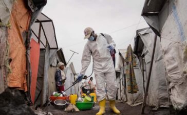 A Red Cross worker spraying chlorine-based disinfectant in Goma in the Democratic Republic of the Congo in August 2024MOISE KASEREKA/EPA-EFE/Shutterstock...