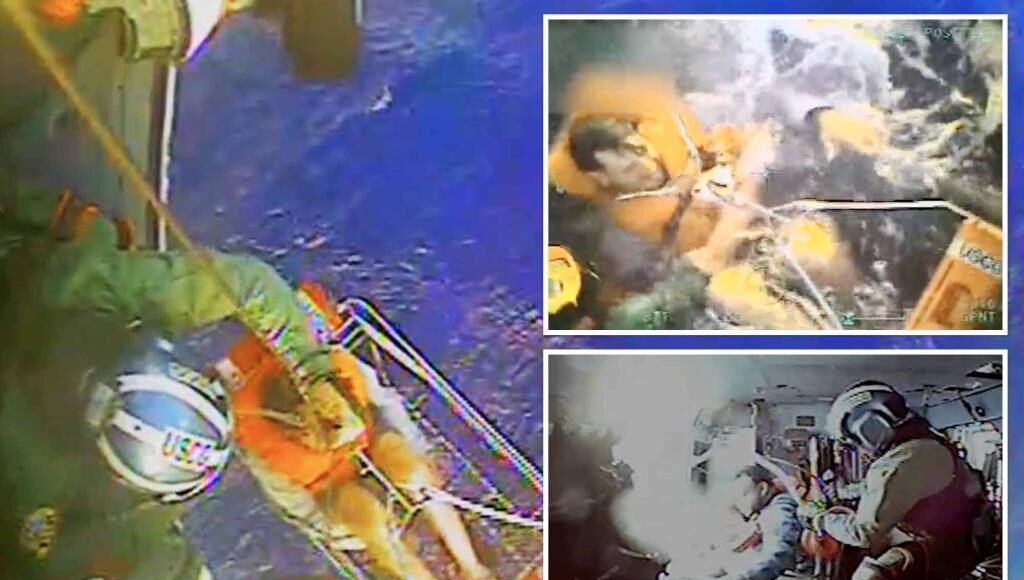 Fishermen saved by Coast Guard in high-seas drama captured on video