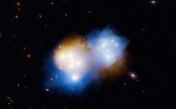 When galaxy clusters collided, the dark matter (blue) sailed ahead of the normal matter (orange)W.M. Keck Observatory/Adam Makarenko When two...