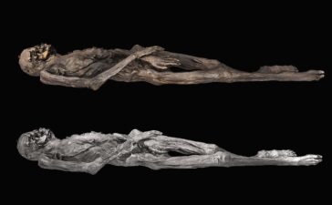 A 3D model of the tattooed mummy. The top image features textures derived from photographs that were captured using light...