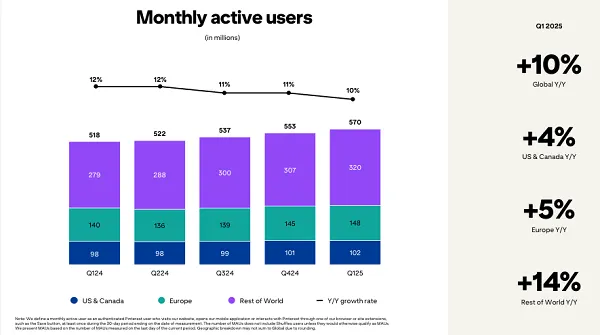 Pinterest has shared its latest performance update, recording solid increases in both user and revenue in Q1 2025.