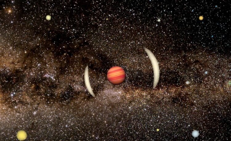 Artist’s impression of the free-floating planet lensing light from a distant source