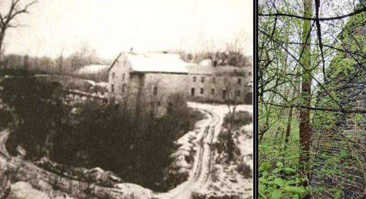 The limestone buildings could have, should have, lived on. But they did not. We are fortunate to have views of the Hollow as it existed in the 1930s, long after the mills had been abandoned. Even then the buildings were in ruins. Over the years since, the buildings have disappeared, the limestone repurposed for other uses in the local area.