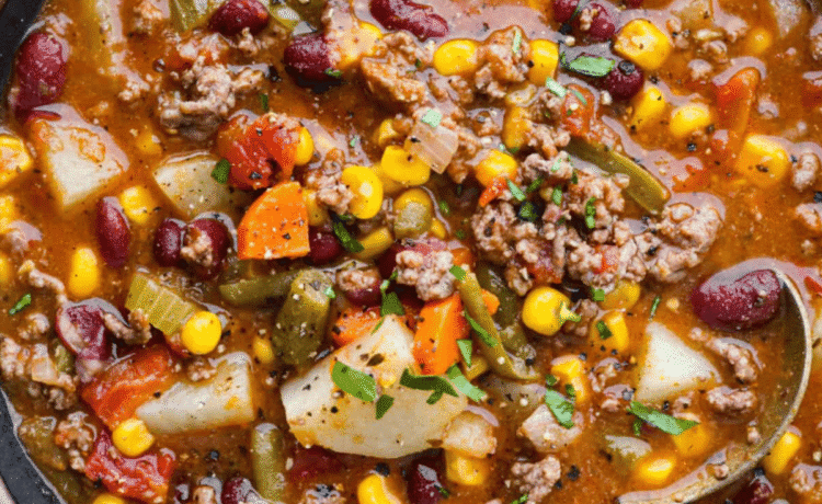 Shipwreck stew is a one-pot dinner that keeps things simple and affordable. Ground beef, tender potatoes, and everyday vegetables cook together in a rich tomato broth. It makes a cozy, filling meal without extra dishes or extra cost.