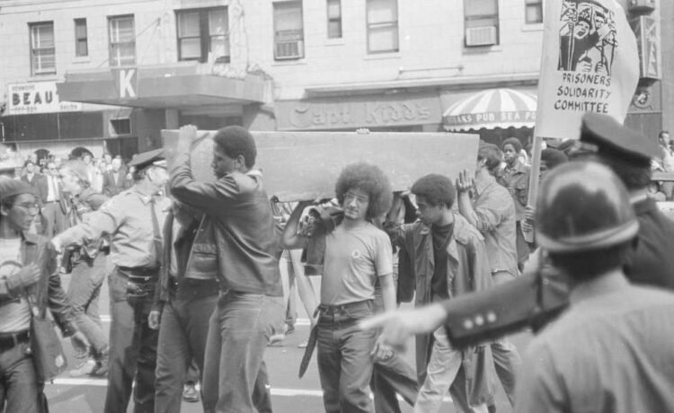 Immediately following news of the tragedy, The Prisoners Solidarity Committee and Youth Against War and Fascism gathered outside of Rockefeller’s office on West 55th Ave to protest the actions of Governor Nelson Rockefeller and the New York State Police.