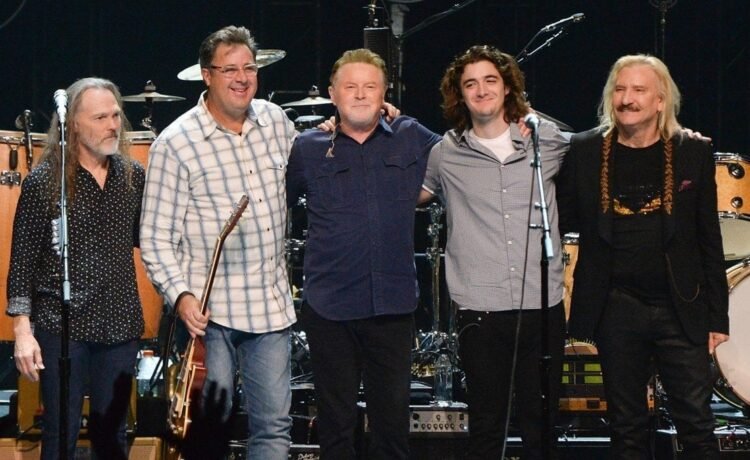 Timothy B. Schmit, Vince Gill, Don Henley, Deacon Frey, and Joe Walsh are the current performing members of the Eagles. The Eagles’ made the highest-ranking entry onto our annual chart at No. 6. (Image: Getty)