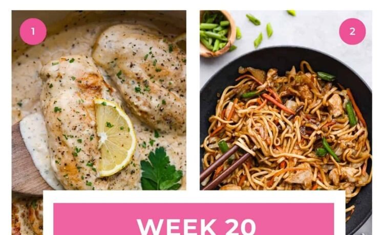 This free weekly meal plan is just what you need to get your week started. It provides five meals that will feed 4-6 (depending on if you are feeding adults or kids), AND it includes a shopping list! With fresh new ideas and easy-to-make recipes, having a weekly menu plan will be a lifesaver.